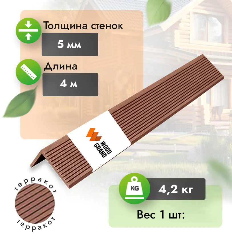Рекомендуется приобретать уголки из ДПК у одного производителя, чтобы они соответствовали цвету террасной доски или ступеней. В нашем ассортименте уголки идеально подходят по цвету к другим изделиям из ДПК и МПК. Вы можете заказать уголки с быстрой доставкой по всей России в течение 7 дней.