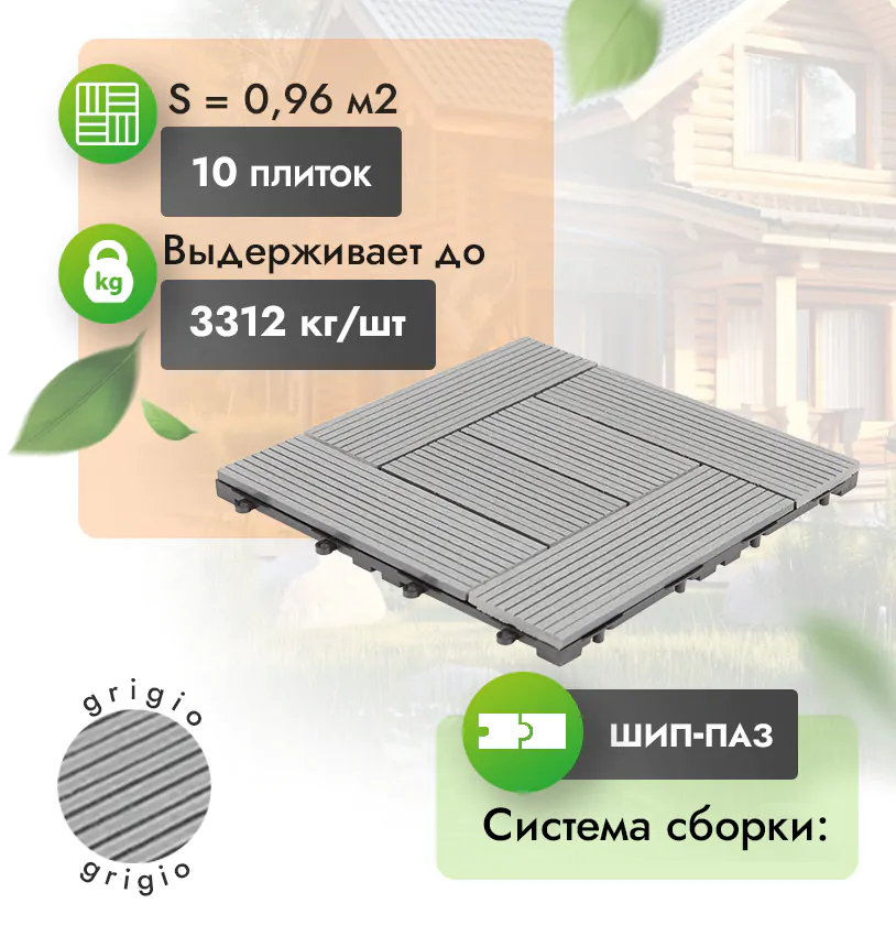Современный садовый паркет из МПК – это лучший материал для облагораживания ландшафтов или придомовой территории. Он представляет собой модульные плитки из минерально-полимерного композита (МПК) с пластиковой подложкой и замковым креплением типа «шип-паз».